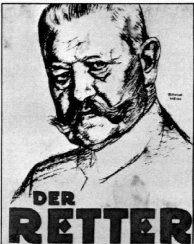 1925年,魏玛共和国总统选举时兴登堡的竞选招贴画(国会大厦陈列图片)。招贴画中的文字是“救星”。