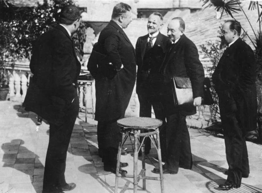 1922年热那亚会议期间,魏玛德国总理约瑟夫·魏尔特(Karl Joseph Wirth,1879—1956)会见苏俄代表、对外贸易人民委员列昂尼德·克拉辛(1870—1926)、外交人民委员契切林和副外交人民委员阿道夫·越飞。