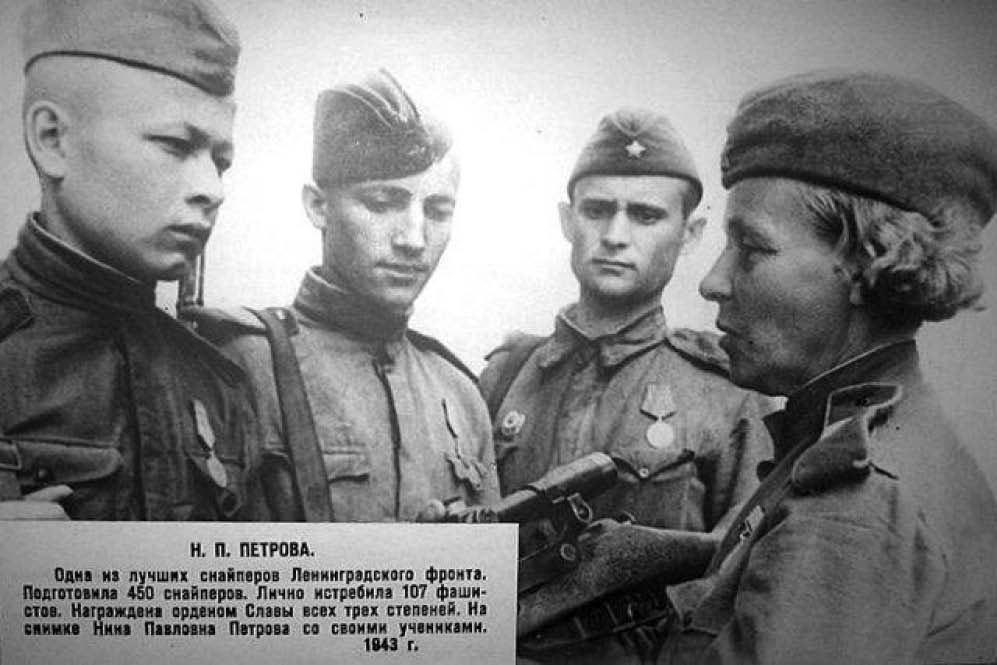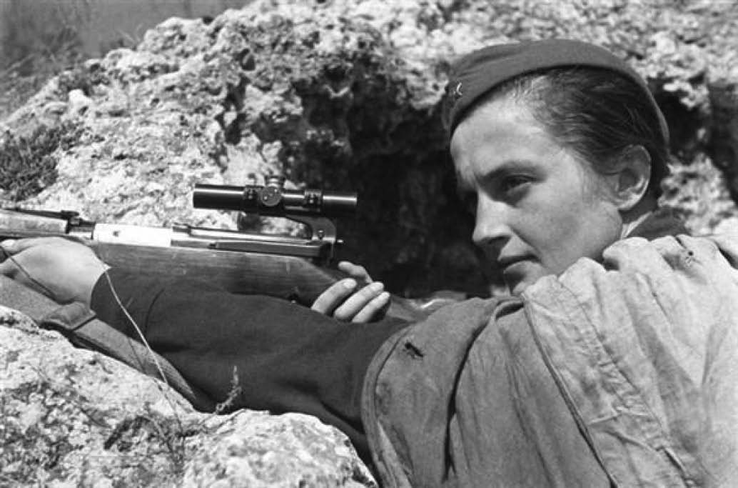 红军有多名女狙击手毙敌纪录超过百名,纪录最高的是柳德米拉·帕夫里琴科(1916—1974)和妮娜·罗布科夫斯卡娅(1925—),分别为309名和308名。帕夫里琴科原来是基辅大学历史系学生,1941年6月卫国战争开始后即“投笔从戎”。原来安排她做战地救护工作,但被她拒绝,坚持要到战斗部队。由于中学时代参加过射击俱乐部活动而且成绩不错,上级同意了,于是成为第25步兵师一员,并且是狙击手。1941年8月击毙两名敌军,取得首次胜利。此后在敖德萨作战,毙敌187名。在克里米亚半岛塞瓦斯托波尔作战8个月,到1942年5月,毙敌数已经达到257名。6月她不幸被敌军迫击炮弹片炸伤,伤愈后不久从前线被撤下,改做培训狙击手新人的工作,这样她的纪录便停留在309人上(其中36名是敌方狙击手)。把她从前线撤下是出于保护考虑,因为她已经成为知名人物。战争是残酷的,“二战”期间苏联红军女狙击手总数超过2,000名,大多数都像罗莎·夏尼娜那样为国捐躯了,最终能和战友们一起欢庆胜利的只有约500人。