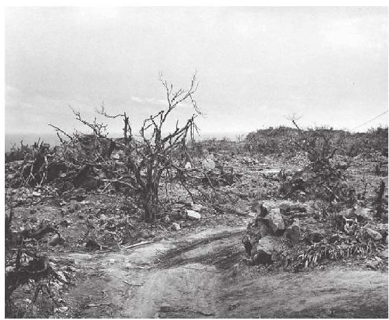 经过激烈战火的洗礼,硫黄岛早已面目全非,连山上的树木都显得格外狰狞