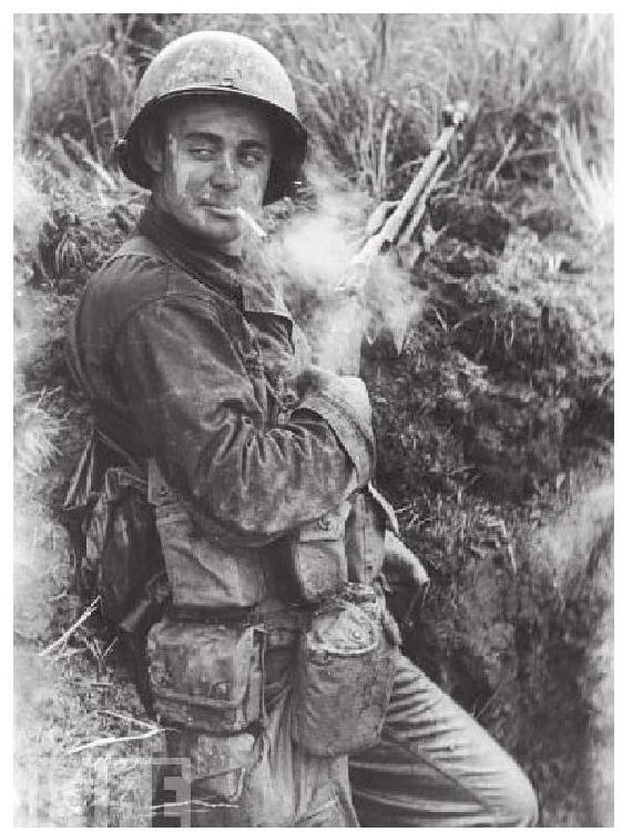 这是哪位大神?斯莱奇惊讶地抬头望去,发现此人身穿一件干净的粗布衣服,拿一台手提摄影机,原来是个战地摄影记者。他站起来是为了拍摄装甲车燃起的浓浓黑烟。