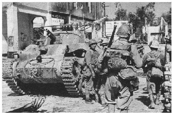 陆战队毫不示弱,一名队员将手雷扔到战车底下,炸毁了它的履带。失去行动能力的战车只能在河滩上团团打转,一发炮弹过去,即化成废铁一堆。