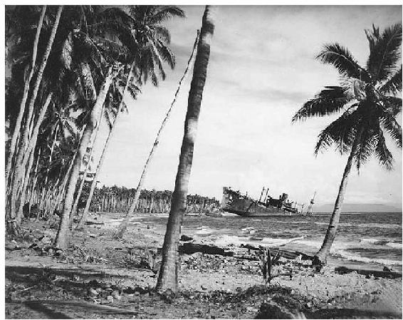 瓜岛沙滩上被美军击毁的日军运输舰。这艘运输舰大老远跑来,但只是华丽丽地打了回酱油。