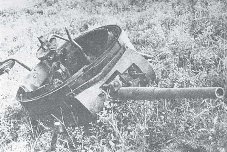 苏军T-26坦克的防护能力较弱。图为飞入草丛之中的炮塔,其坦克车身已被击毁。