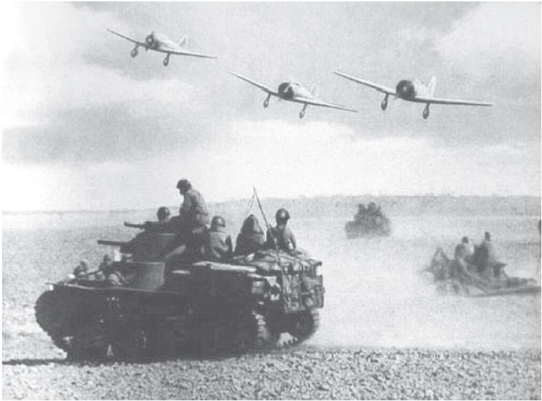 日本生产的坦克,逐年有所改进。第四战车联队主要采用95式坦克,其速度比94式土豆坦克更快,在当时世界各国装备的轻战车中,属于机动性最好的一种。不过在防护差、火力弱方面,94式、95式几乎是同病相怜。要说95式比94式强,也就强那么一点点,在苏军的T-26坦克面前,完全可以忽略不计。