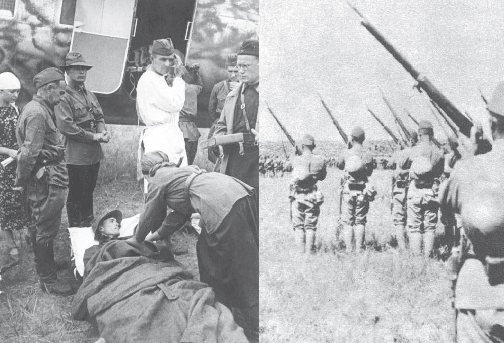 左为苏军用飞机将伤亡人员运往后方,右为即将撤离的日军追悼阵亡士兵。据统计,苏蒙军一共战死7974人,受伤15251人。