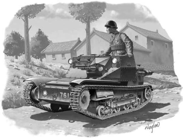 这种意大利制CV-33菲亚特战车是一种小型战车,乘员两人,重不过3吨,仅装备9毫米或者7.62毫米机枪。这种战车和日军称为“豆战车”的九四式轻型坦克属于一个级别,火力和装甲方面还要弱一点,面对日军的战车防御炮难以抗衡。CV-33战车在欧洲战场毫无建树,但在当时装备简陋的中国军队中,堪称一种新式武器。