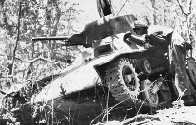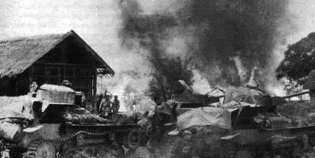 也许答案就在被击毁的战车上面。从照片上看,潘毓昆团长脚踩的那辆战车是一辆日军九七式装甲车,符合日本陆军从海路运输到缅甸,配属到第18师团总部的战车类型。第18师团也有少量九五式坦克,但原本不是自己的,而是借用的第14坦克联队原计划参加英帕尔作战,却掉队的一支部队。他们在追赶部队途中,因为抄近路进入了第18师团防区,被远征军打得焦头烂额的第18师团参谋长片冈衷当即将这些送上门的九五式坦克扣留。这位外号“雷神爷”的参谋长和正全力筹划英帕尔会战的牟田口廉也中将大吵了一场,终于获准“借”用这批坦克。当然,片冈连第14联队的乘员也没有放过,统统留下参战。用现在的说法,应该叫做“湿租”。但这些九五式坦克并没配属到孟关前线,因为它的履带压强比较大,只有被称作“豆坦克”(即袖珍战车)的九七式装甲车,能够在雨季通过日军的简易公路进入胡康河谷。