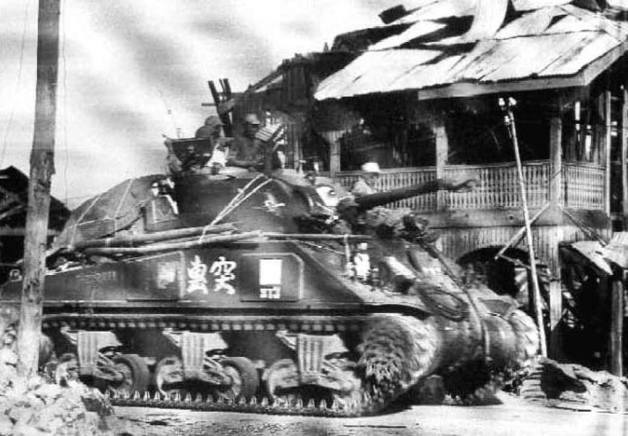 斯蒂威检看了日军被击毁的战车,取了一面日军的膏药旗,带回去做纪念品。美国人没有“膏药”的概念,他们把这种旗帜叫做“肉丸子旗”。他的印象是日本坦克无论重量还是防御,连M3A3的水平都达不到。这的确是事实,在各国主力战车中,日军的九五式轻型坦克的确属于袖珍体型的,加上弹药和人员,也只有7.7吨重。虽然这种坦克在中国战场曾给装备低劣的中国步兵部队造成很大威胁,但在缅甸的战斗中,不但远征军的坦克它打不过,连卡车也可以“欺负”它。1944年12月,远征军的卡车驾驶员邓中华就曾经用美制道奇大卡车,撞翻了一辆袭击运输部队的日军九五式坦克,创造了战争史上的奇迹。