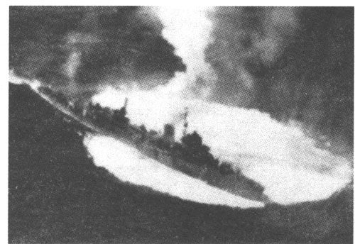 改装后的平海号在日本也没有留下照片,但却意外地在美军的照片中留下了影子。1944年11月25日,该舰担任新成立的第一运输战队旗舰参加莱特湾海战,在吕宋岛海战中被美国海军勇猛号和埃塞克斯号航母的舰载机击沉。上面三张连续的照片,记录了该舰最后的情状。