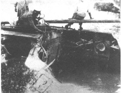 日本海军的技师在检查鸥号被击中之处