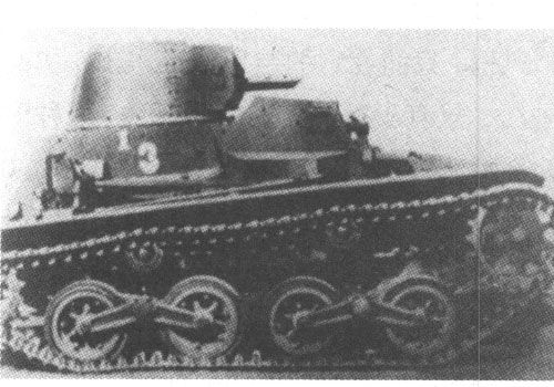 这辆战车造型独特,前车体长,后车体短,顶部有一个丘形炮塔,上覆圆形装甲舱盖,前车盖上左侧有一具探照灯。全车造型矮小,到处有凸出的铆钉,显示依然没有采用焊接车体。从这些特征判断,这种战车,正是日军在侵华前期大量使用的94式轻型坦克。