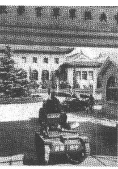 首先吸引我注意的,是那辆被击毁的日军战车。日军中是真有这种战车,还是画家的杜撰?