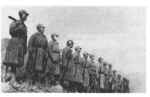 身着冬装的国民党军。注意其军衣的长度,可与画面中中国士兵的服装进行对比。
