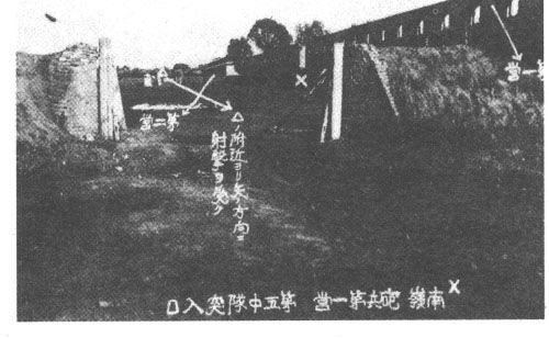 而下面的照片,记录了日军突破和遭到抵抗的经过。