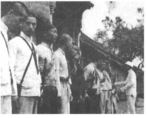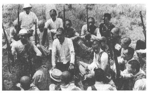 这张照片,是石家庄的“俄人自警团”,一个依附于日军的武装特务组织,曾经冒充苏联红军战俘向晋察冀进行过渗透,被当时负责这方面的八路军政法部门破获,活捉潘斯诺夫等武装特务,最后将潘斯诺夫和另一名俄国特务判处了死刑