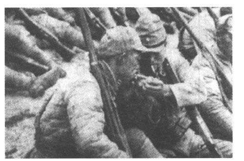 这是中央军十七军的部队。这些南方军人到达长城即投入殊死奋战,打出了徐廷瑶、关麟征、杜聿明、刘勘、黄杰等一批名将,因为服装简陋人称草鞋兵。但是日军发表这张照片,则说中央军训练有素,且装备优良。图片中说明中国军队使用的是马克西姆水冷式重机枪。有报道这支部队使用过装甲列车作为指挥战车,但是没有发现相关的资料照片,比较遗憾。