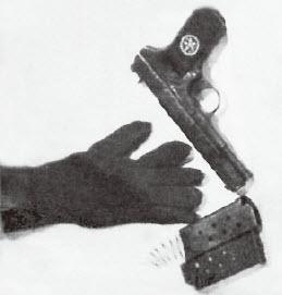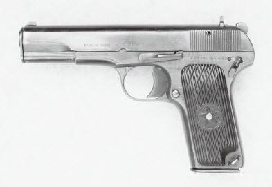 通过对苏军飞行员的手枪进行考证,认为这是我国军队长期使用的老五一和五四式手枪的前身——托卡列夫TT-33式7.62mm手枪。从击锤形状和握把的五星还有扳机可以看得出来。