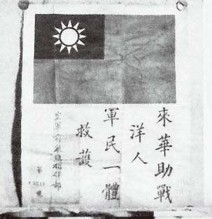 “当初飞虎队的飞行皮衣里都会缝制这个国民政府民航委员会的国旗幅布。美国人称为‘Bloodchit’,中文即是‘血符’或‘血票’。这个最大的作用是许多飞行员被击落后,即被发现的中国人民妥善隐藏,再由游击队送往大后方。没有想到这在飞虎队以前就使用了。看到萨苏找到这张泛黄的血符照片,当年中国艰辛抗日、友邦义助的历史,仍令人激动莫名。”