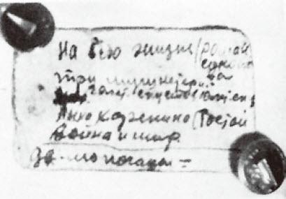 文字第一行最右边的部分和文字的最下面一行无法辨认,其余的似乎都是一些名著名称:《二十年后》、《安娜·卡列尼娜》、《战争与和平》等,不知道是不是照片中女子有人托付飞行员找书?这让我感到十分遗憾,似乎无法通过这条线索找到这名阵亡飞行员的身份了。