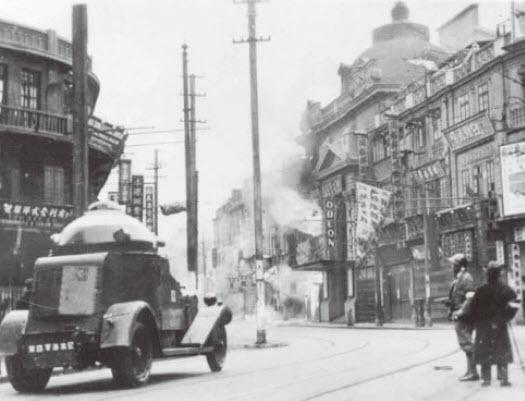 在北四川路战斗中的日军装甲车和摩托化部队