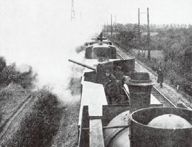 装甲列车是上个世纪早期各国普遍装备的重型军事装备,由多节带有装甲的机车、炮车、运兵车、指挥车等组成,威力强大。这是英军的装甲列车,中国装甲列车与此类似但火力稍逊。