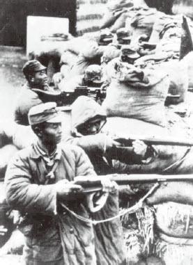 中国军队用沙袋制作的工事在一二八起到了很好的防御作用,不知怎的,这张照片让我想起了巴黎公社的街垒。