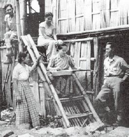 这是远征军野战医院中的缅甸护士在和中国士兵谈天。