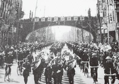 淞沪抗战后期,战斗进入巷战——1937年10月中国守军在上海构筑街垒奋勇抵抗。