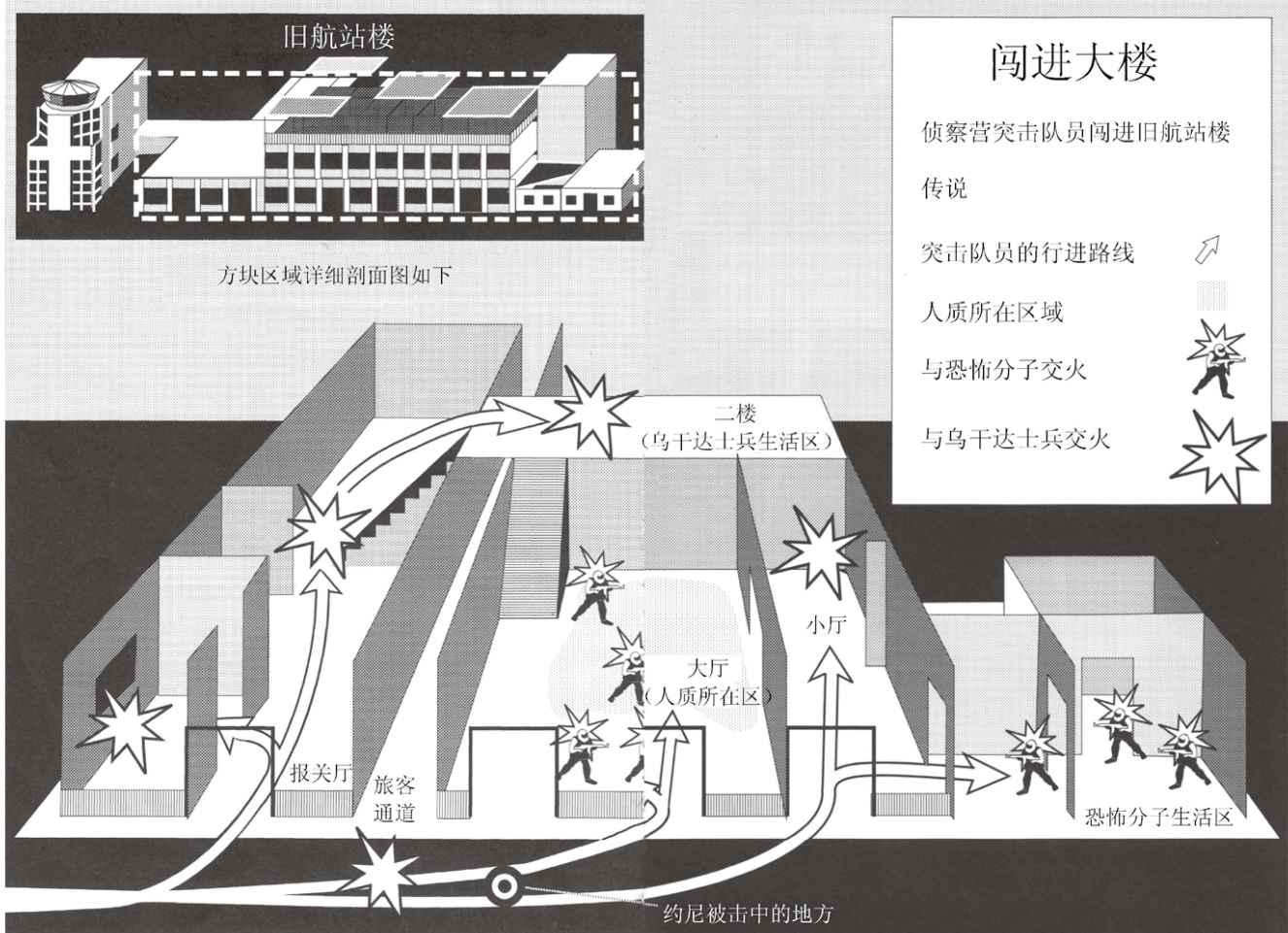 一位侦察营的军官走到约尼跟前说:“不要和突击部队靠得太近,记住你指挥官的身份,而且你不能有任何闪失。”约尼对他笑了笑,回答说:“没事的。”5然后,他又和穆吉握了握手。