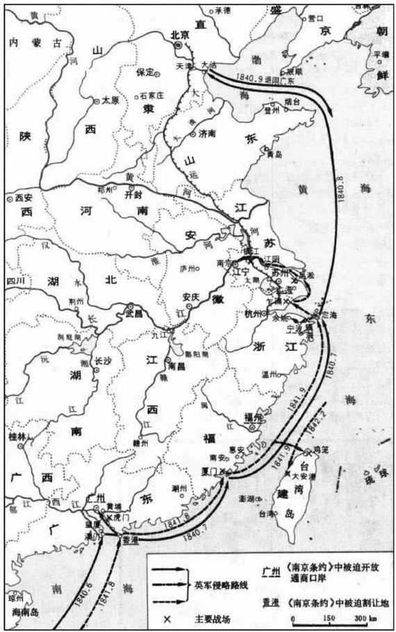 1840年6月,英军舰船47艘、陆军4000人在海军少将懿律、驻华商务监督义律率领下,陆续抵达广东珠江口外,封锁出海口。8月,英舰抵达天津大沽口外,道光帝害怕了,罢了林则徐、邓廷桢的官职,并派琦善南下广州谈判。
