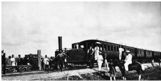 1876年,由英国人在上海修建,中国最早的营运铁路吴淞铁路开通时的景象。