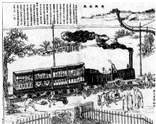 清末,中国人装配的第一台火车头“中国火箭号”机车。