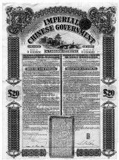 晚清政府的对外债券。1911年5月20日,邮传部大臣盛宣怀与英、法、德、美四国银行团正式签订《湖北湖南两省境内粤汉铁路、湖北境内川汉铁路借款合同》,借款1000万英镑(先付600万英镑),以两湖厘金盐税作担保。