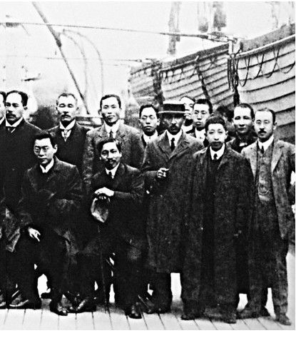 1911年冬,孙中山自欧洲回国途中在轮船上留影。