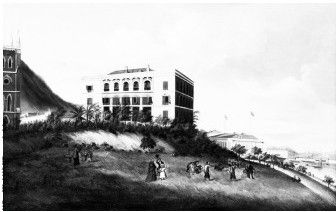 琼记洋行在香港的总部大楼(1870年代油画)。