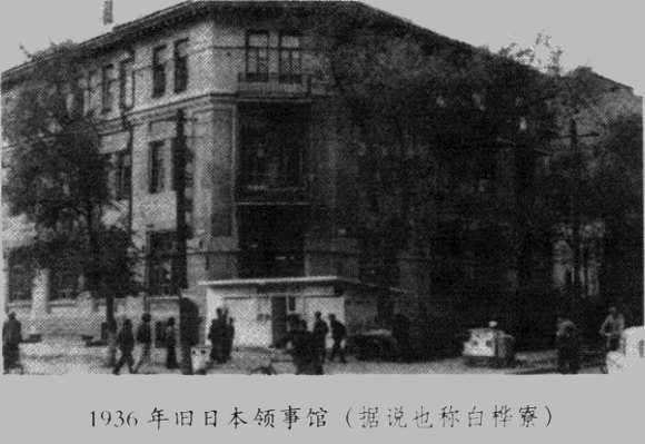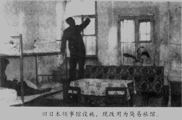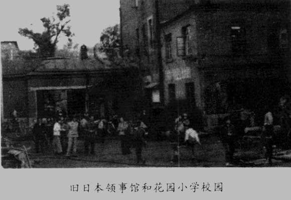 原日本领事馆的旧址,位于花园街和奋斗路的拐角,现在是挂着“花园旅社”简易旅馆和花园小学的招牌。这里位于市中心的闹区,距“文化大革命”中拆除的中央寺院旧址的地盘不远。