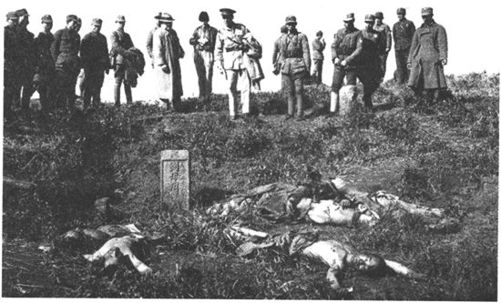 终于,有一个军曹跑了出去,根据他的报告,日机随后飞去影珠山侦察,但是战场已一片死寂,横躺竖卧的,到处都是日军尸体。