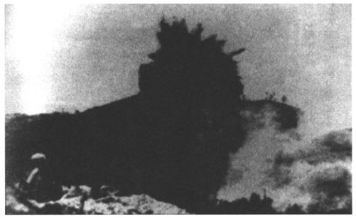 在将火龙喷入地堡后,堡内立即燃烧、爆炸。