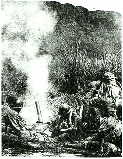 日军用迫击炮轰击东孤岭,可仍然攻不上山头