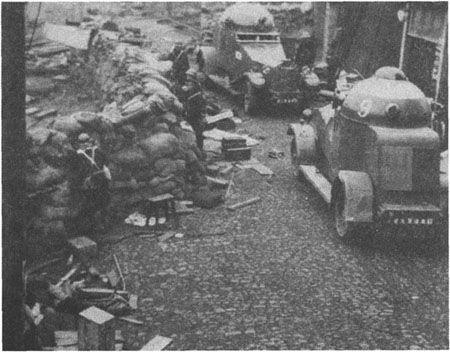 坦克车一开过去,藏在商店内的敢死队突然杀出,一下子截断了步兵和坦克车的联系。