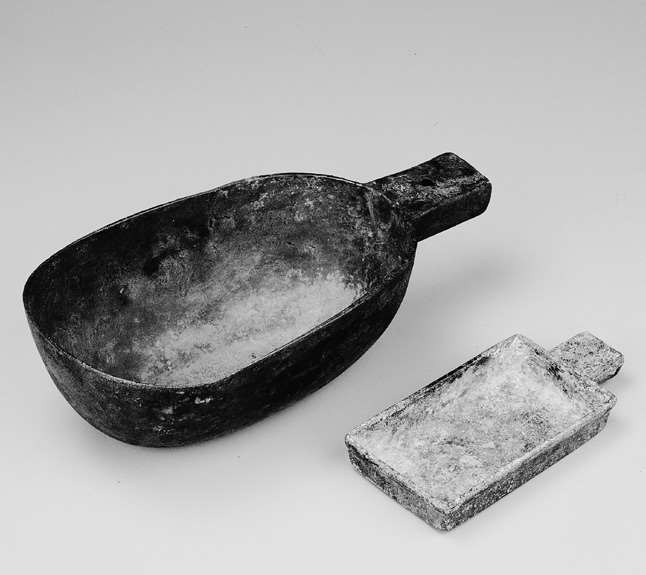 公元前221年,秦统一度量衡。这两件铜量均为当年统一量器的标准器具,外壁均刻有统一度量衡的40字诏书。