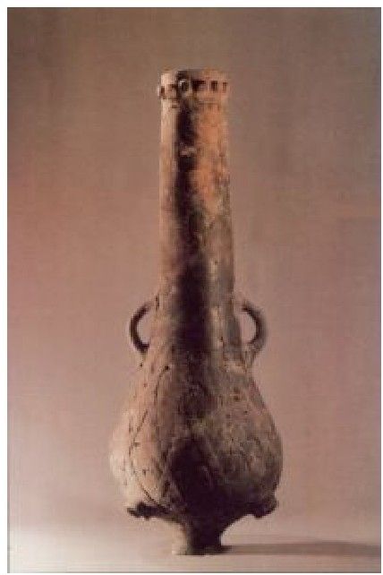 王巍:有这种可能。出土的物品还有用陶土做的鼓9,很高,最高的有1.8米以上,每个墓里有一件。另外还有石头做的扁平的罄,可以悬挂着敲击。鼓和罄这些东西跟一些仪式有关,而这些东西只出现在大墓里,所以我们觉得,这个大墓的墓主人不是一般的富人,他应该拥有军事权力。
