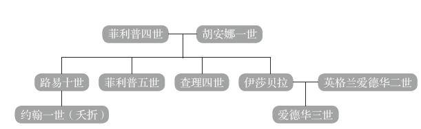 1314年法王菲利普四世去世,接下来的14年里,他的四个儿孙路易十世、约翰一世、菲利普五世、查理四世先后走马灯似地更替,都在位没多久即驾崩。