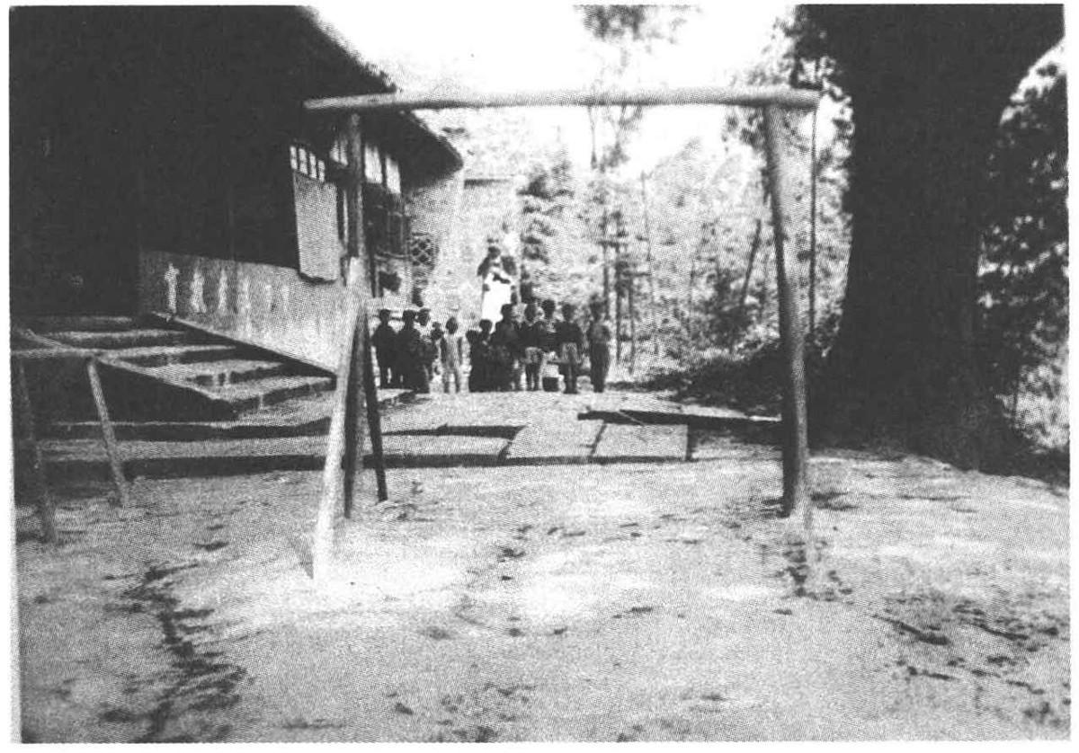 1941年3月,春到栗峰,桃花盛开。右起逯钦立、董作宾、陈启华等。
