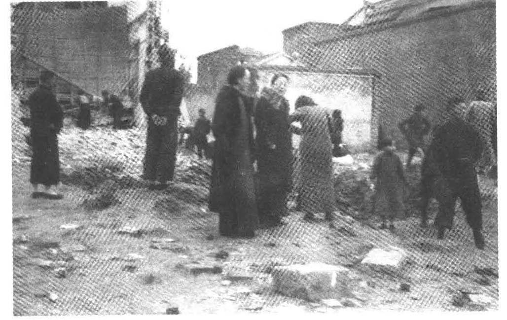 1937年11月24日,日本人第一次轰炸长沙,李济夫人与赵元任夫人(左三、左四)在小吴门现场。
