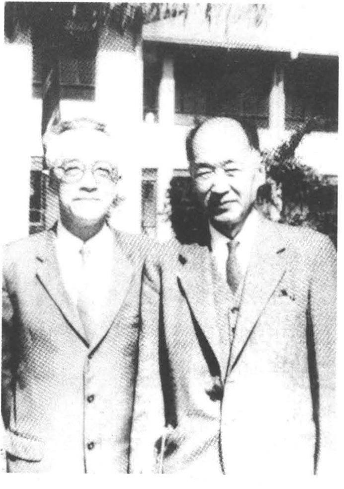 1960年,胡适与李济在“中研院”史语所办公楼前。
