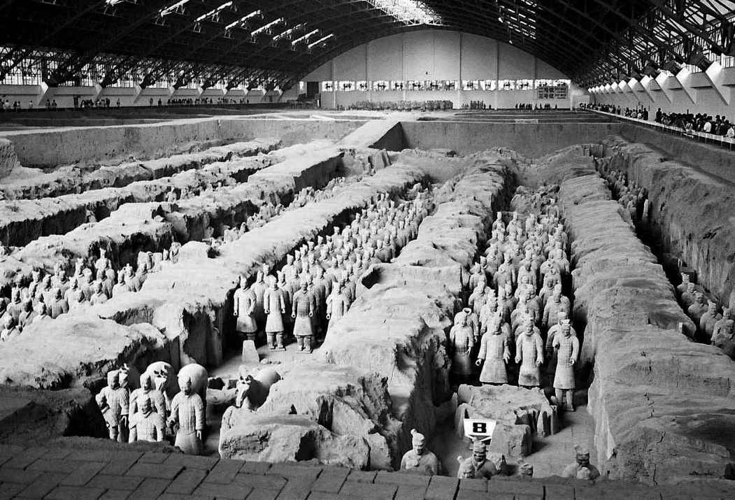 二世解决问题的方法很简单,还是那一百零一招──“杀”!先帝后宫嫔妃只要没有儿子的,统统为先帝殉葬。把参与建造陵墓的能工巧匠全部关进陵墓,让他们统统饿死在里面。如此一来,简单利落,落了片白茫茫大地真干净,不愧是暴君秦始皇的儿子!