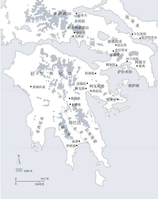 这一切当然向他们的邻人们发出了严重的警告。到公元前700年,斯巴达人就已经取得惊人的成功,跨越了最具威胁性的自然边界——泰格托斯山脉,发动了吞并位于山脉西侧的麦西尼亚(Messenia)的土地的战争。他们在这里发现了“宽敞的舞台”,这里的土地“适宜耕种,物产富饶”9,麦西尼亚甚至比拉斯第蒙那里的土地还要肥沃,虽然麦西尼亚人同样可以追溯到古老的多利安祖先的世系,但是斯巴达人以残忍的侵略和无情的决心,野蛮地对任何可能的血缘关系表示出他们的蔑视。像麦西尼亚这样广阔的土地不会轻易屈服,但是斯巴达人不断冷酷地保持对他们的目标的控制,年复一年地血洗那里的田野和树林。麦西尼亚最终彻底屈服了。这场胜利使征服者花去了一百多年的时间。