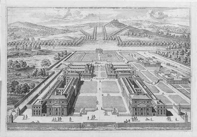 托马斯·基普(ThomasKip)1699年根据克里斯托弗·雷恩(ChristopherWren)的计划所绘制的格林尼治医院鸟瞰图。